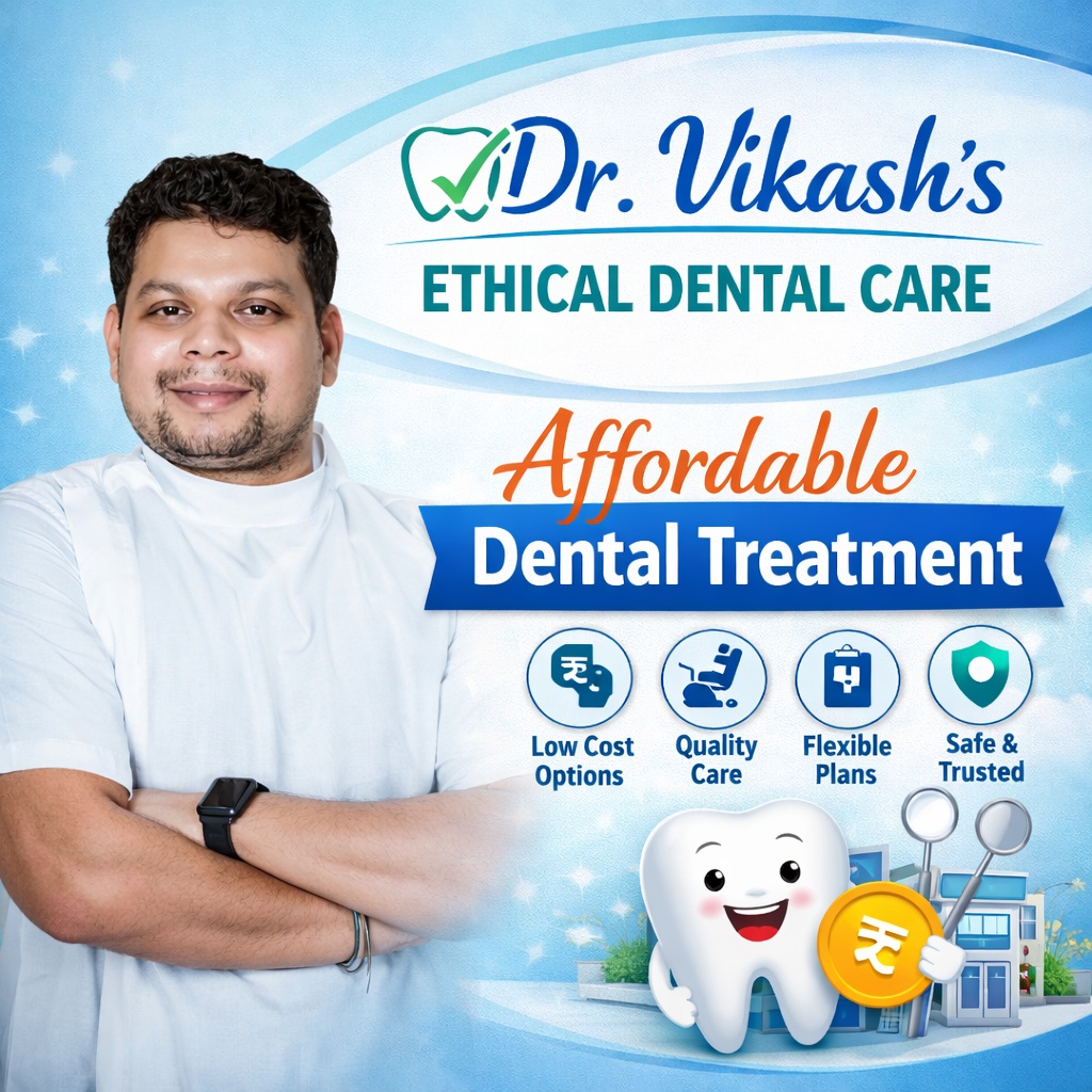At Dr. Vikash’s Ethical Dental Care – Affordable Dental Treatment Segment, we are committed to making quality dental care accessible for patients who may not be able to afford standard treatment charges. This segment is designed to provide safe, ethical, and professional dental services through qualified and experienced dentists associated with the clinic. Every treatment is carried out with care, transparency, and clinical responsibility by the treating dentist, while maintaining the clinic’s commitment to affordability, patient dignity, and proper guidance for every case.